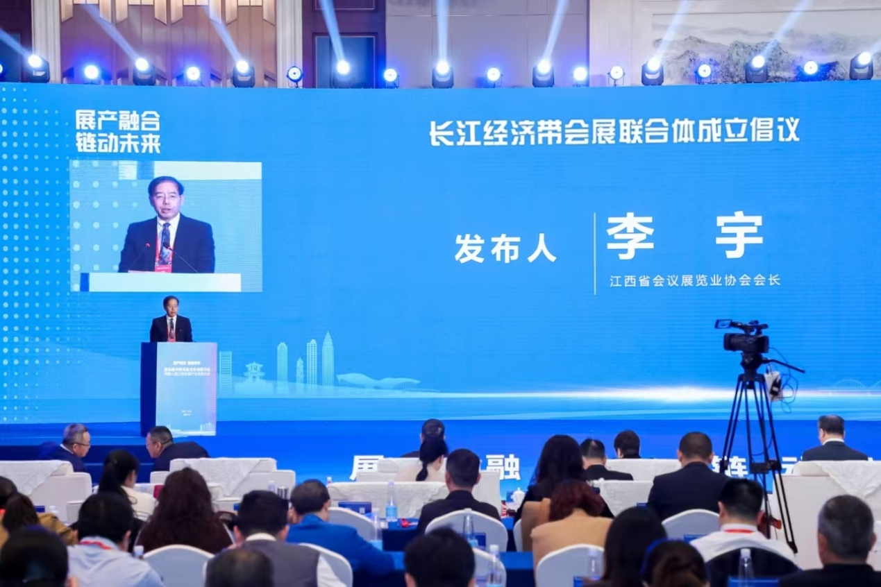 江西省会议展览业协会会长李宇发布长江经济带会展联合体倡议。(江西省会展协会/供图)