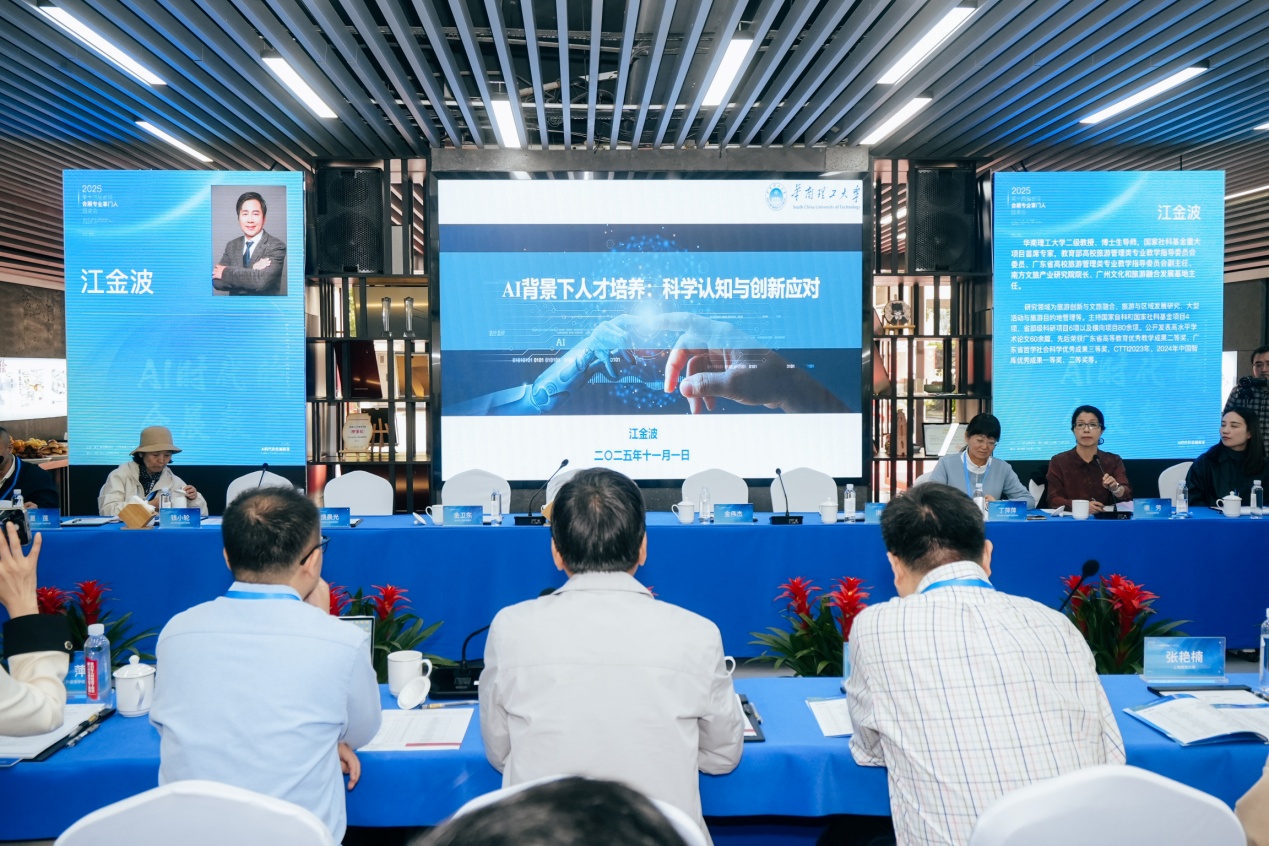 海南大学教授、博导耿松涛从AI时代的会展专业突围与师者升维角度,基于多年沉浸式研究积累的大量数据重点谈了专业教师的角色重塑与能力重构。他认为面对AI洪流,教师群体需要实现专业突围与角色升维。教师要成为“数据艺术家”,借助AI实现教学的科学化与精准化。