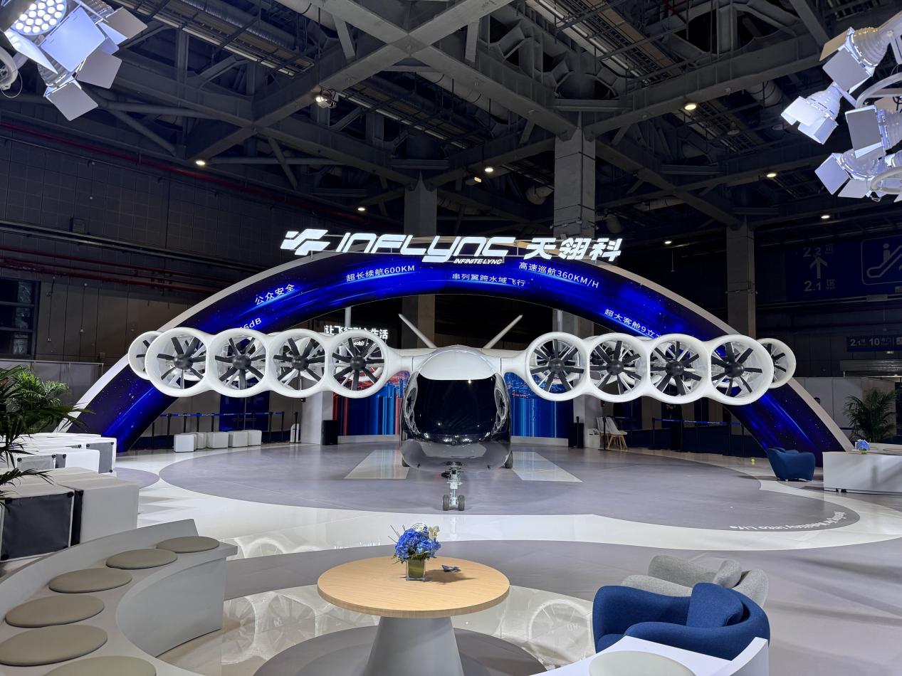 11月4日,记者来到进博会现场国家会展中心(上海)探馆。图为天翎科垂直起降的空中专车。中国经济网记者 韩陆 摄