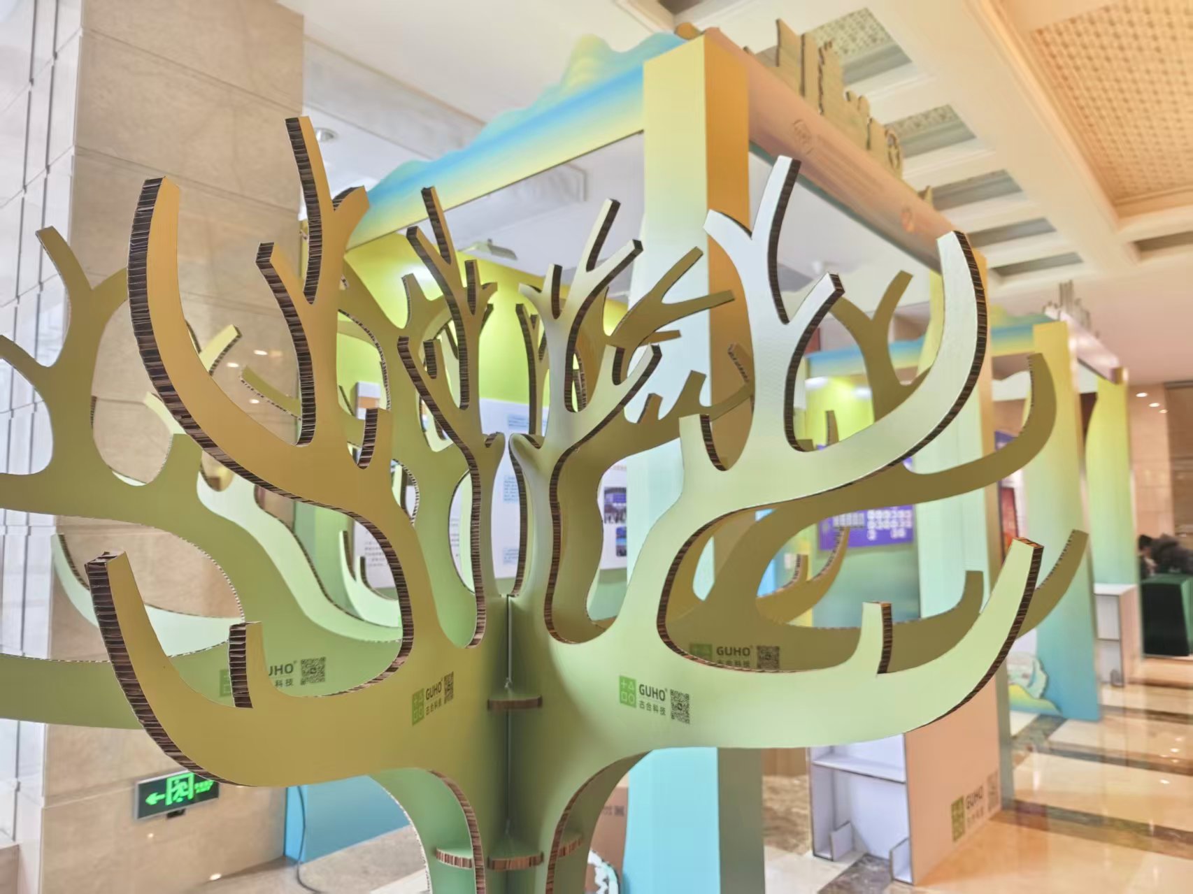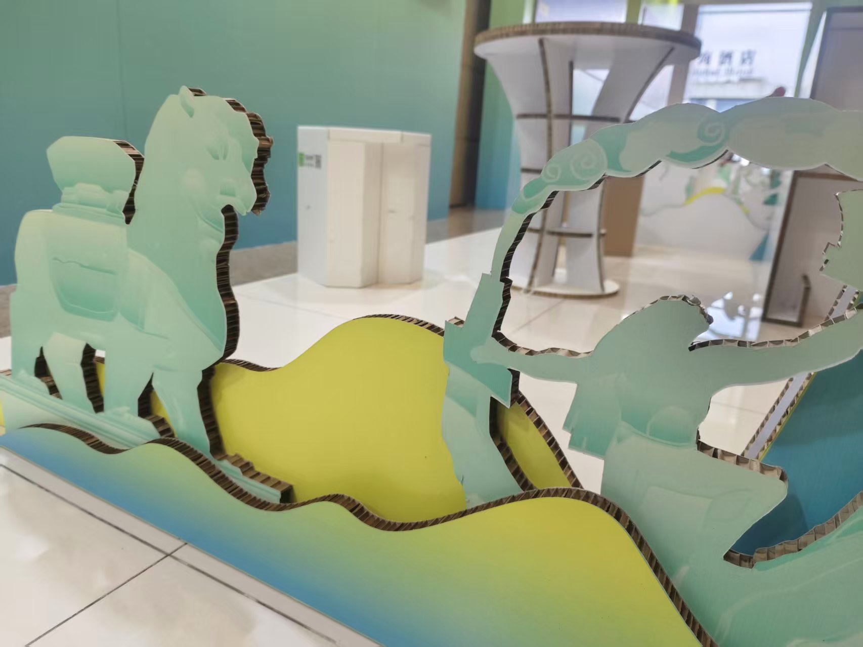 展会现场,纸质展台吸引了参观者驻足,展现出独特的环保理念与高品质的呈现方式。中国经济网记者王婉莹/摄