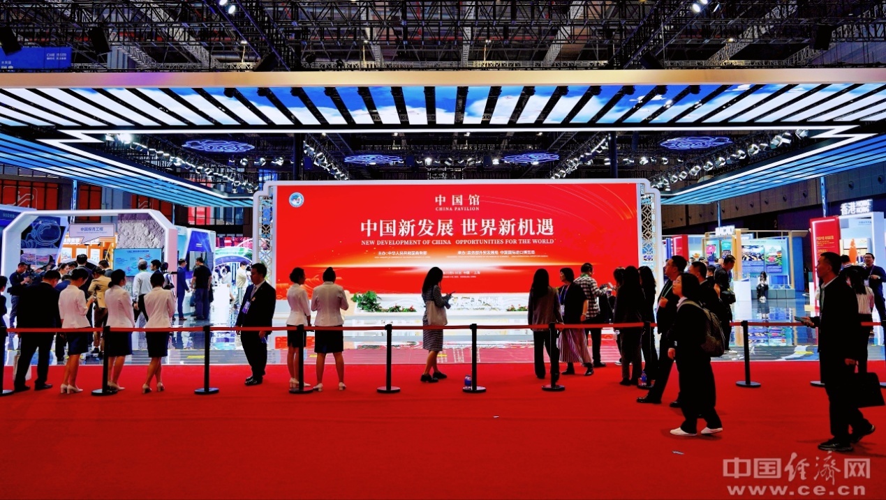 11月5日至10日,第八届中国国际进口博览会在上海举办。图为参观者正在走进中国馆。中国经济网记者 马常艳/摄