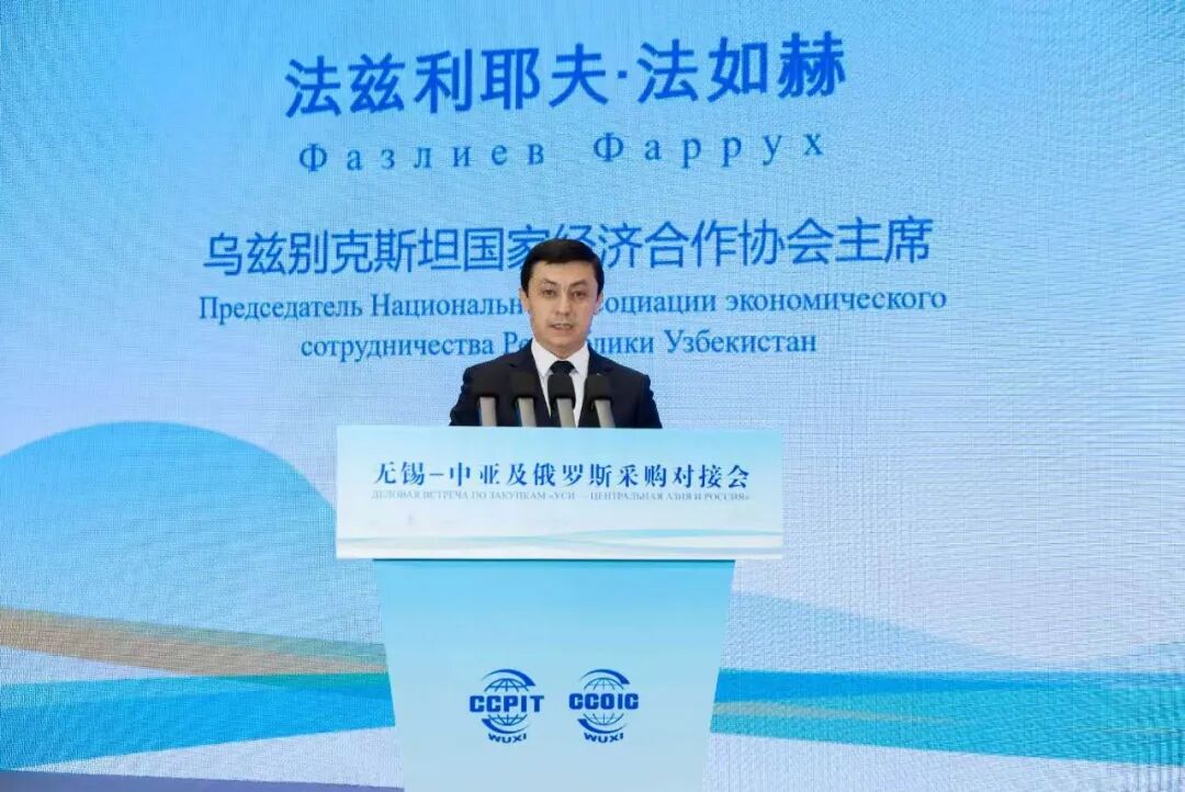 阳春三月,万物勃发。4月7日至9日,由24位中亚及俄罗斯等国家商协会、企业家组成的采购商代表团应邀访问无锡,并于4月8日在我市联合举行“无锡-中亚及俄罗斯采购对接会”。乌兹别克斯坦国家经济合作协会主席法兹利耶夫·法如赫、俄罗斯上合组织国家民间外交中心中国代表图劳斯卡斯·埃里克、无锡市贸促会会长钱前出席活动并致辞。活动由副会长王雪松主持。